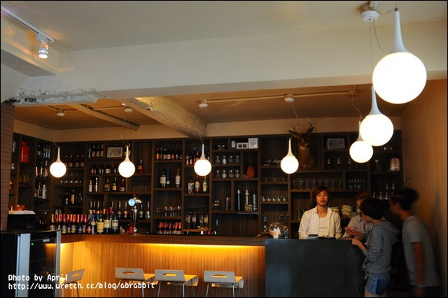 吧台很有調酒吧的感覺,後頭陳列的全部都是一瓶瓶的酒,
