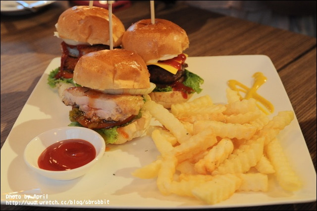 一次可以吃上三種口味的漢堡~感覺好讚喔~