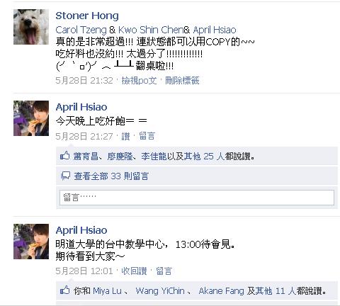 當天我和陳先生同時在FB上說「今天晚上吃好飽」,