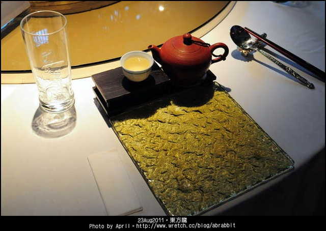 未上菜時,每個人的餐桌前都擺著餐具以及一壺茶,