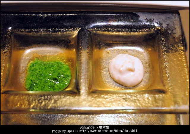 配上兩種沾醬:松露野菇醬與羅勒青醬。