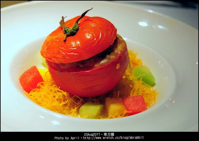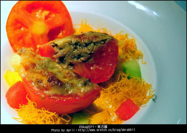 蕃茄烤牛肉這道菜的作法讓我想到很久之前到桃園的峇里水岸,也有看過這種料理。
