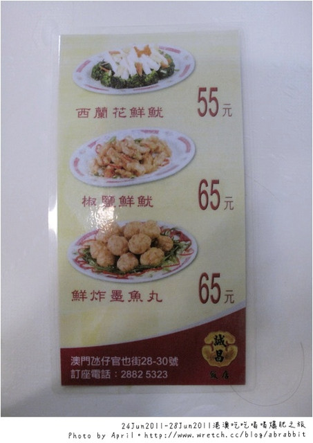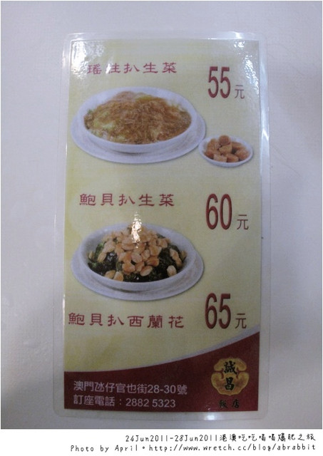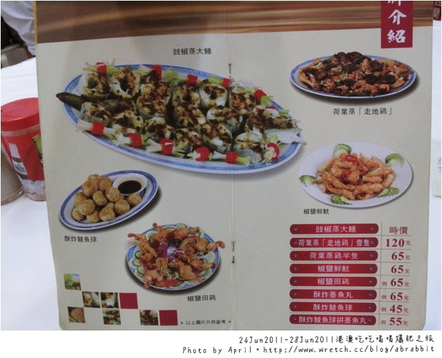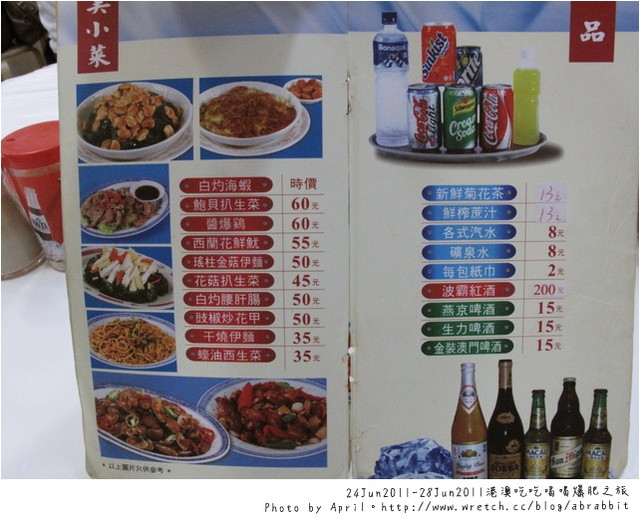 小菜類一份的價位大概在葡幣35-65元之間,約台幣140-260元之間。