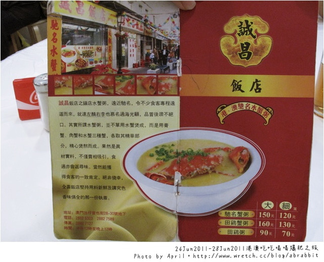 而誠昌飯店的「水蟹粥」可說是有名到了極點!