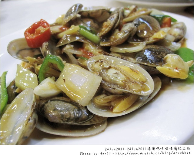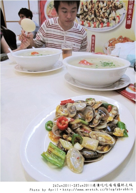 我們還點了一盤豆鼓炒花甲 葡幣50元、一瓶新鮮菊花茶 葡幣13元。