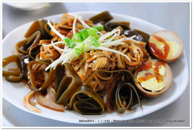 我們點了一盤滷味,裡頭有滷蛋、海帶、豬耳朵、豆皮。