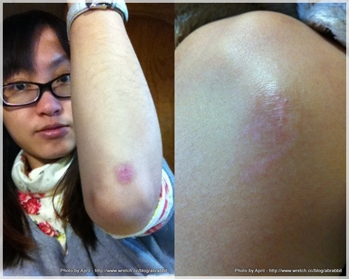 這是出車禍沒幾天過後的照片,傷口雖不大,但紅腫。