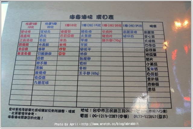 來瞧瞧價目表,列得很清楚,最便宜的是10元,有些蔬菜是時價。