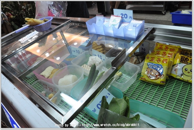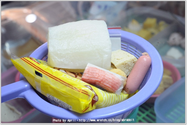 亂夾一通,有高麗菜、地瓜葉、白蘿蔔、鑫鑫腸、凍豆腐、王子麵、蟹肉棒等等。