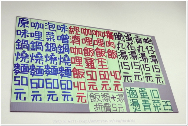 有鍋燒麵、咖哩飯、礦肉飯和一些湯,價位從15元到60元不等。