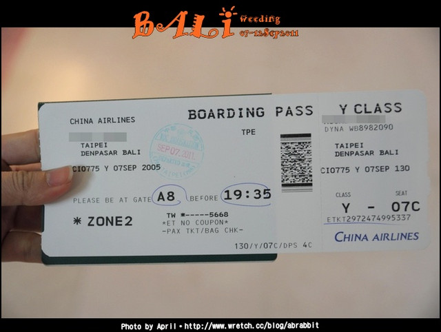 當天晚上我們搭著華航的CI0775班機前往峇里島,