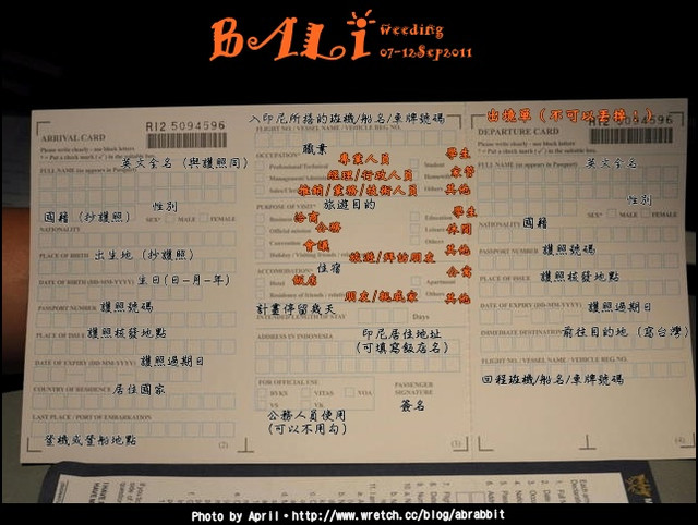 不會寫入境表的話,我翻譯囉,參考看看吧!