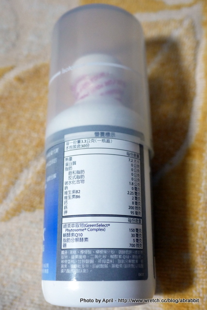 裡頭有綠茶萃取物、輔酵素Q10、脂肪分解速與硼。