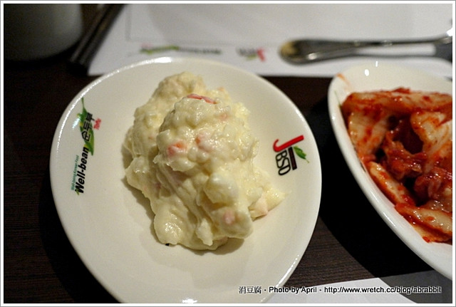 總共有四種小菜,先端上桌的是馬鈴薯泥沙拉,