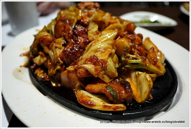 裡頭的雞肉塊拌著高麗菜與QQ的韓國年糕一起炒,