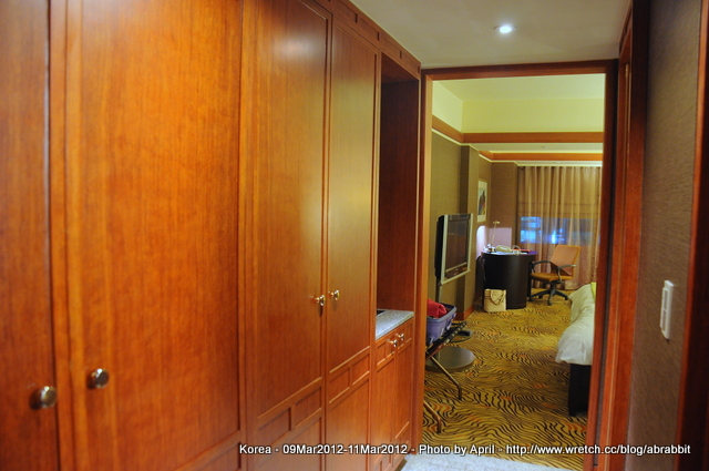 我的左手邊是櫃子區,右手邊則是浴室,最裡頭是床與辦公桌和沙發。