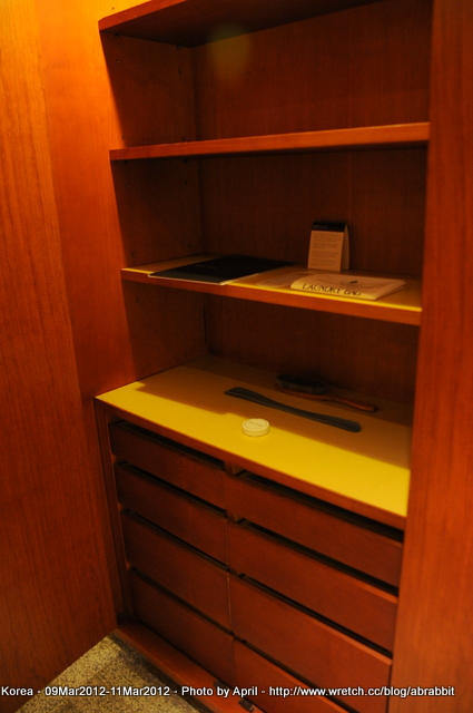 外頭的櫥櫃打開,裡面有浴袍拖鞋和保險箱。