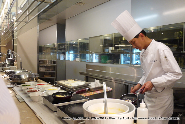 我最喜歡的,就是餐廳裡頭有廚師能煎顆熱呼呼的蛋。