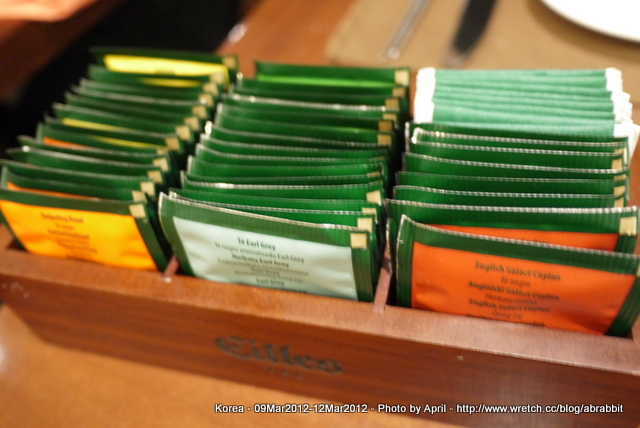 餐桌上頭還有茶包,有六種口味,可以自己泡。
