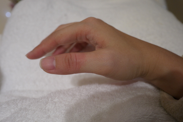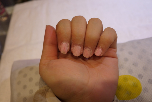 美甲師先幫我把之前的光療指甲磨掉一些。