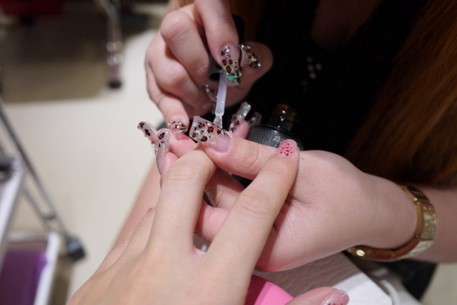 經過一番討論過後,美甲師打算幫我畫可愛的豹紋。