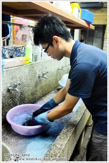 再接連放置清水、醋酸中搓揉,
