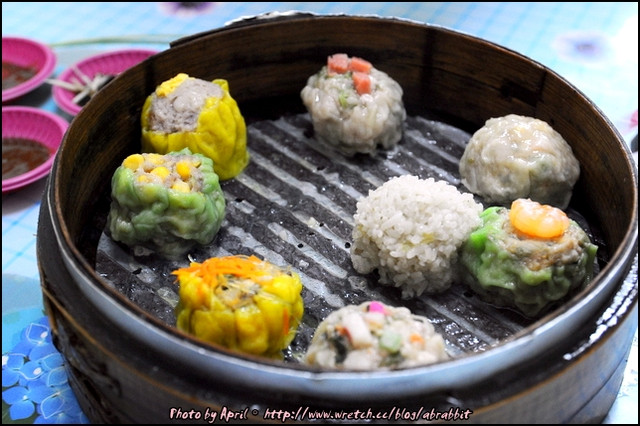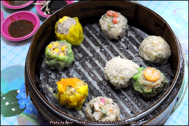 裡頭有八顆燒賣,每種口味都不一樣,