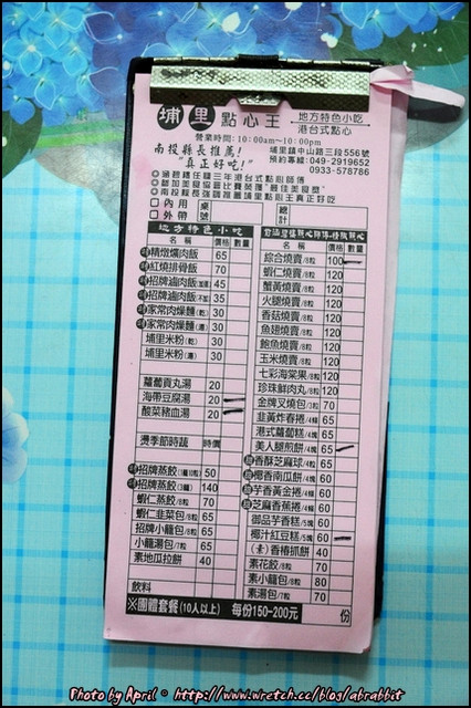 後來決定點綜合燒賣,還有充滿埔里特色的美人腿煎餅與兩碗湯和椰汁紅豆糕。
