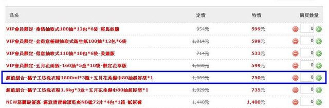 永豐餘VIP購物網裡頭有許多家用品,像是衛生紙、洗衣精等等,