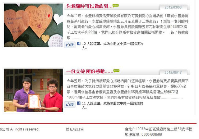 在永豐餘VIP公益粉絲團裡頭也看到他們幫忙宣傳這愛心義賣。