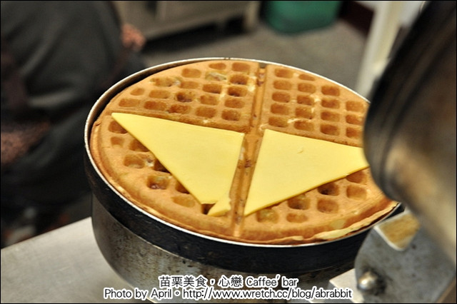 另外一頭也沒閒著,烤好的半面鬆餅鋪上起司片等待中。