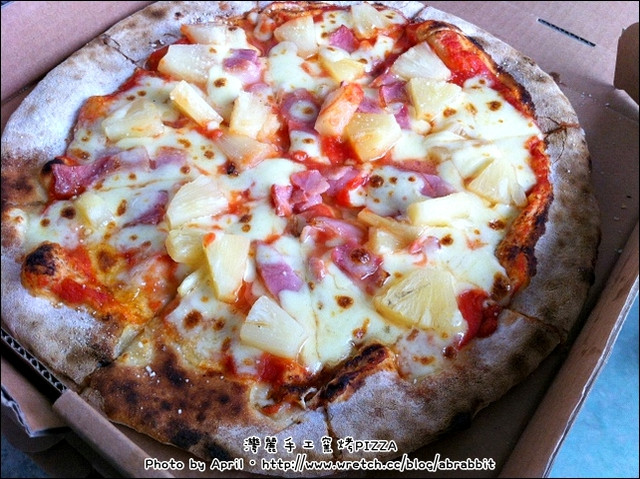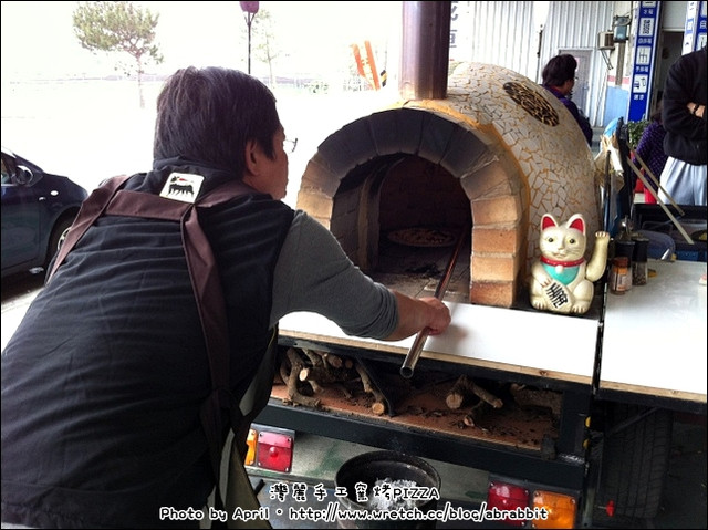 剛從窯烤車出爐的手工窯烤的披薩,餅皮旁邊都會有粉粉的感覺。