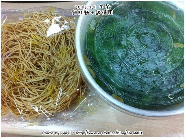 中午陪陳先生去上班,午餐是他煮的乾麵配上一些小菜。