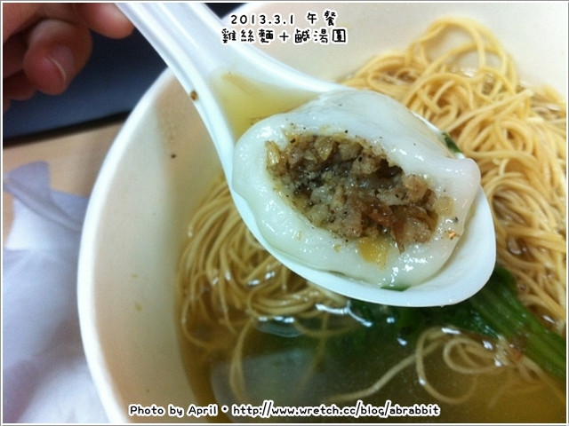 中午和同事一起吃雞絲麵配鹹湯圓。
