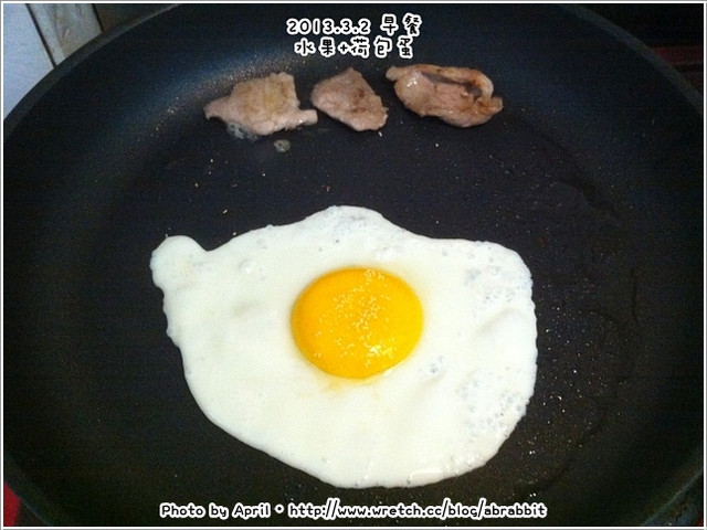 但吃了水果之後不太滿足,嘴巴很纏,於是又煎了荷包蛋和兩小片瘦肉。