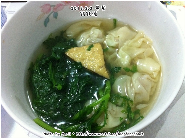今天早上吃餛飩湯,啊!