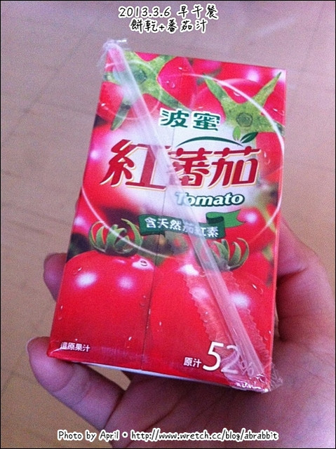 午餐吃了不怎麼甜的麥片餅乾配上蕃茄汁。