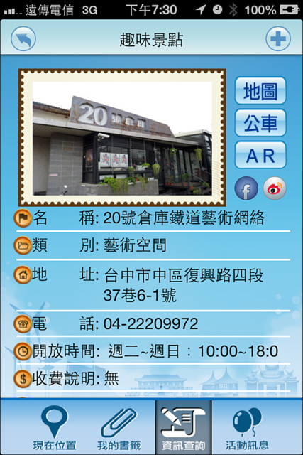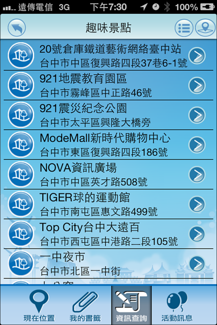 如果你有智慧型手機,那建議你可以安裝這個APP軟體,『 i 遊台中』。