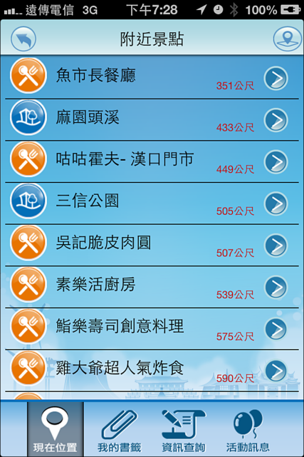 可以很清楚的知道這些景點和目前位置相差多遠,很貼心吧!