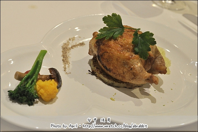 我吃的是法式烤春雞鑲鄉村內餡搭檸檬奶油醬,