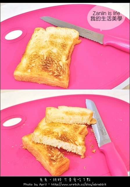 烤完的土司,酥酥脆脆,切起來輕輕鬆鬆的。