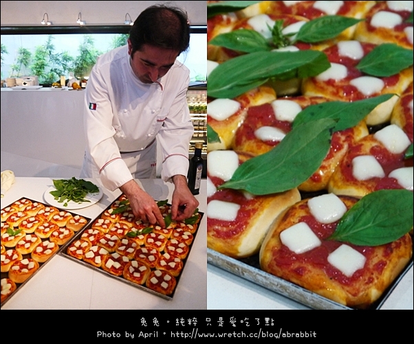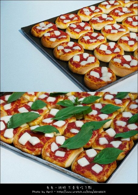 麵包的樣子看起來就像是披薩一樣,配上九層塔一起吃,