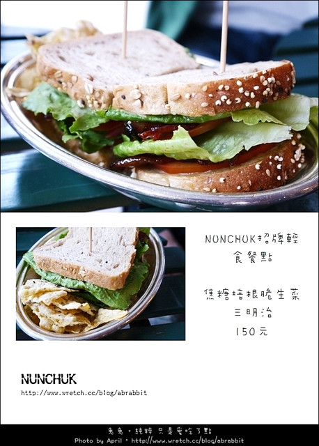 輕食的部份,店家推薦我們焦糖培根脆生菜三明治。